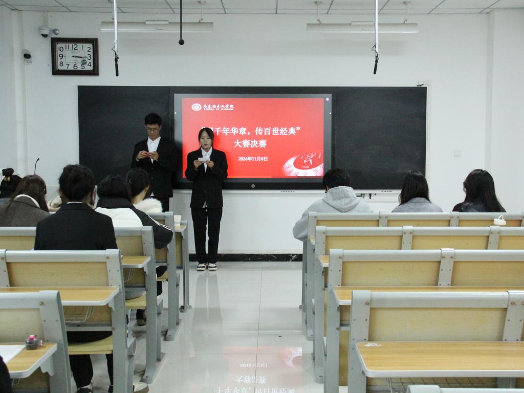 为丰富pg电子官方网站学生的校园文化生活,引导同学们更好地传承和弘扬红色精神,11月8日下午,pg电子官方网站于明园教学楼3-103举行“诵千年华章,传百世经典”朗诵大赛,全体学生积极参与。