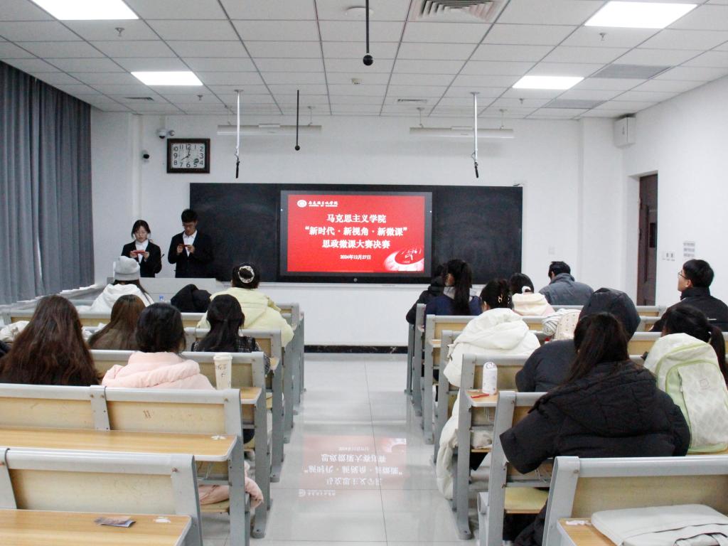 为深入学习贯彻习近平总书记关于教育的重要论述和全国教育大会精神,落实立德树人根本任务的战略举措,不断增强思政教育的实效性与吸引力,12月27日,我院于明园教学楼3A-103教室举行“新时代、新视角、新微课”大学生思政微课大赛。我院副书记董晶、副院长万晓飞、指导教师王衬平、姬海涛担任本次大赛评委,我院学生积极参与。