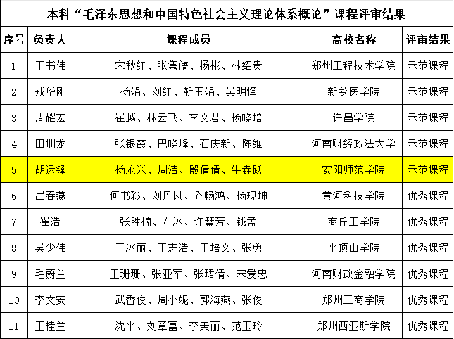 近日,河南省教育厅发布《关于高校思政课优秀课程资源评审结果的公示》。我院“毛泽东思想和中国特色社会主义理论体系概论”课程获评示范课程,“习近平新时代中国特色社会主义思想概论”“中国近现代史纲要”“形势与政策”课程获评优秀课程。在示范“金课”评选中,胡晨静老师荣获一等奖,刘俐老师、常荣娟老师、木忆文老师、周洁老师、杨晓老师荣获二等奖。