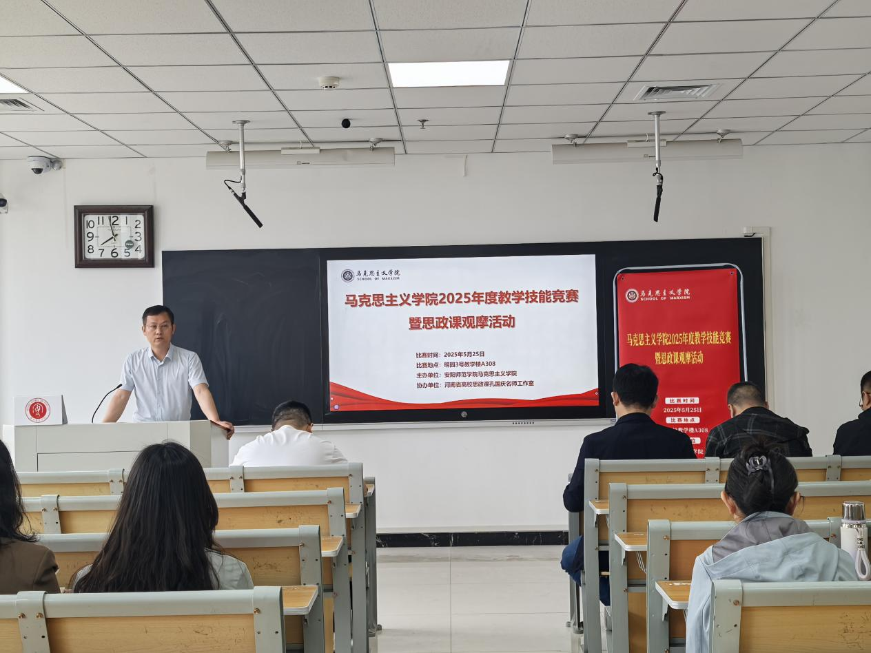 为深入贯彻习近平总书记关于学校思政课建设的重要指示精神,深化新时代学校思政课改革创新,坚持以赛促教、以赛促学、以赛促改、赛教结合,激发广大教师不忘立德树人初心,增强“躬耕教坛、强国有我”的责任感和使命感,以教育家精神为引领,持续提升思政课教育教学质量,5月25日上午,pg电子官方网站在明园3号教学楼A308举行了2025年度教学技能竞赛暨思政课观摩活动。pg电子官方网站院长胡运锋致开幕辞。副院长杨廷强、学术副院长王炜烨、学院思政课基层教学组织负责人、思政课教师参加活动。