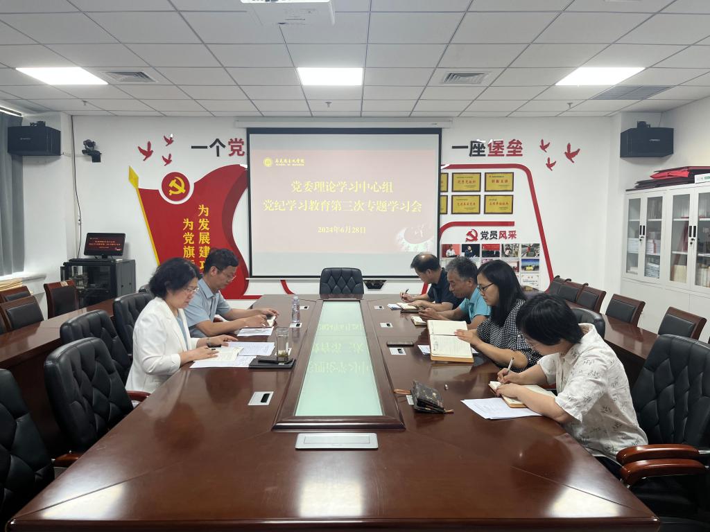 6月28日下午,我院党委理论学习中心组在明园3A-502召开党纪学习教育第三次专题学习会。学院党委理论学习中心组全体成员参加会议,会议由党委书记付卫华主持。