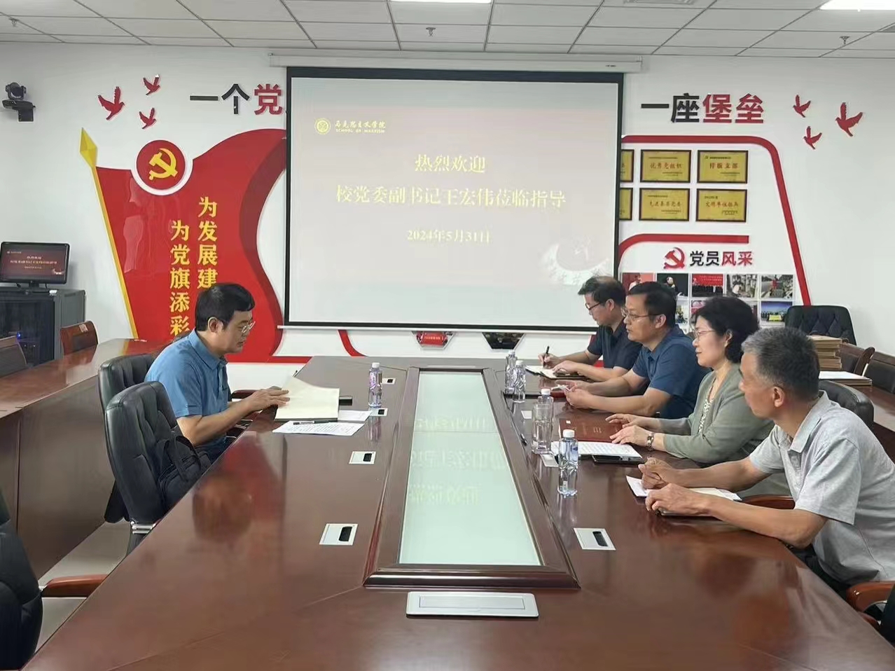 5月31日下午,校党委副书记王宏伟深入pg电子官方网站调研指导工作,pg电子官方网站全体领导班子成员参加调研。