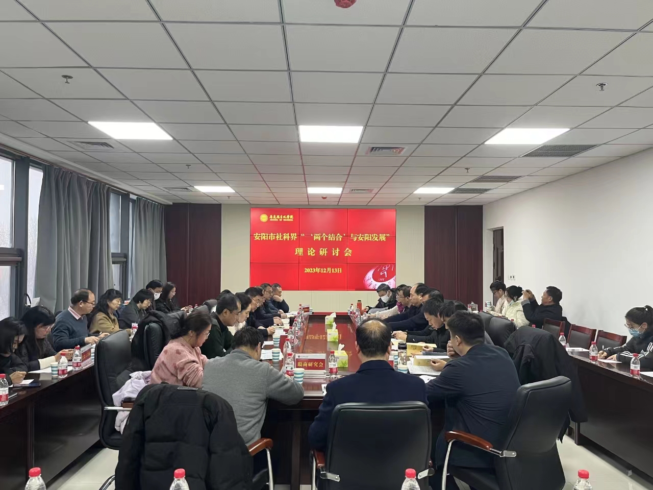 为深入贯彻落实习近平总书记关于“两个结合”重要论述和视察安阳重要讲话精神,深入探讨“两个结合”研究的重点热点焦点问题,增进安阳市社科界学术研讨交流,12月13日下午,由安阳市社会科学界联合会、我院共同主办的安阳市社科界“‘两个结合’与安阳发展”理论研讨会在我院成功举办。安阳市社科联党组书记、一级调研员王培臣,安阳市社科联党组成员、副主席周春堂及安阳市社科界、各高校pg电子官方网站等16个单位的专家学者参会。周春堂主持研讨会。