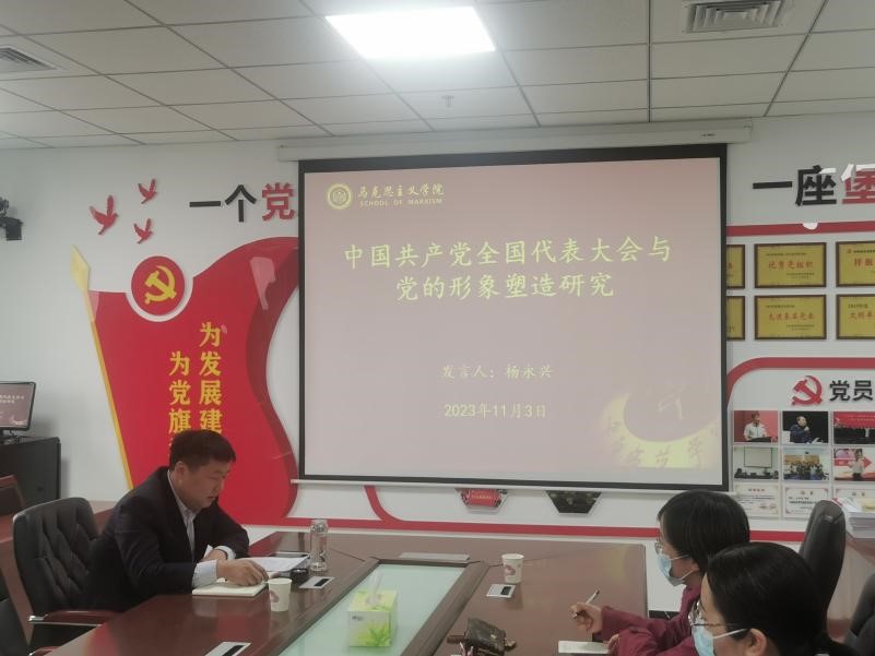会上,杨永兴博士围绕“中国共产党全国代表大会与党的形象塑造”主题展开,对“党的形象塑造的基本问题、表现方式、实践途径及当代启示等重要问题进行了深入分析;周丽君博士围绕“列宁无产阶级政党自我革命思想及其当代价值”主题展开,对列宁无产阶级政党自我革命思想的形成发展、主要内容、实践演变及当代启示等重要问题进行了详细讲解。与会教师和两位主讲教师就各自研究的内容及问题进行了深入讨论交流。