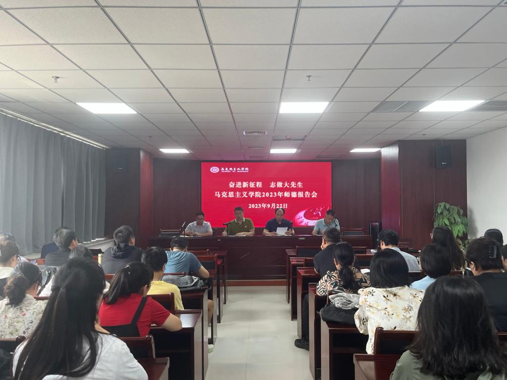 为贯彻落实习近平总书记关于教育的重要论述,持续加强和改进新时代师德师风建设,增强教师教书育人的责任感和使命感,9月22日下午,我院在明园3A421会议室召开“奋进新征程 志做大先生”师德报告会。全体教职工参加,会议由工会主席訾彦锋主持。
