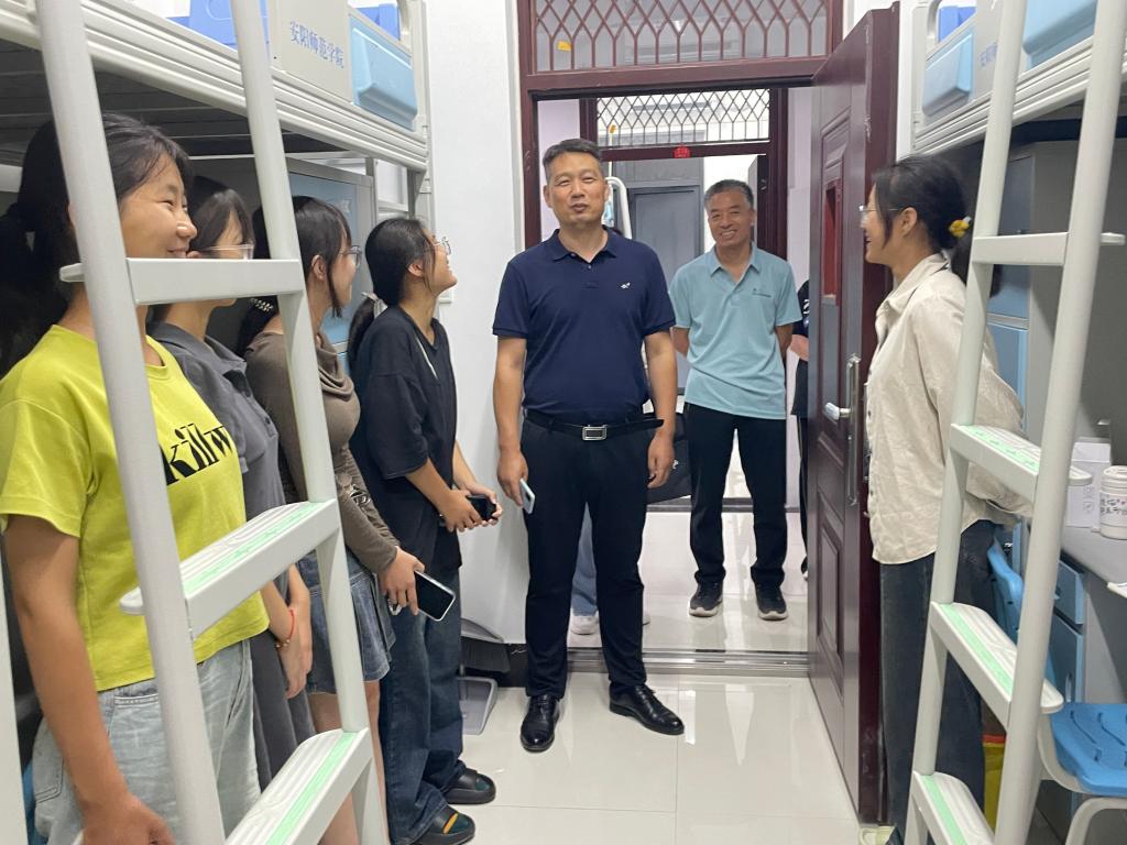 走访中,院领导察看了新生住宿条件,与同学们亲切交谈,提醒同学们要提高安全防范意识,确保人身财产安全;希望同学们尽快适应大学生活,做好大学规划,珍惜学习时光,练就过硬本领;叮嘱同学们要互相关心、互相帮助,快速融入集体,在安师开启人生新征程。