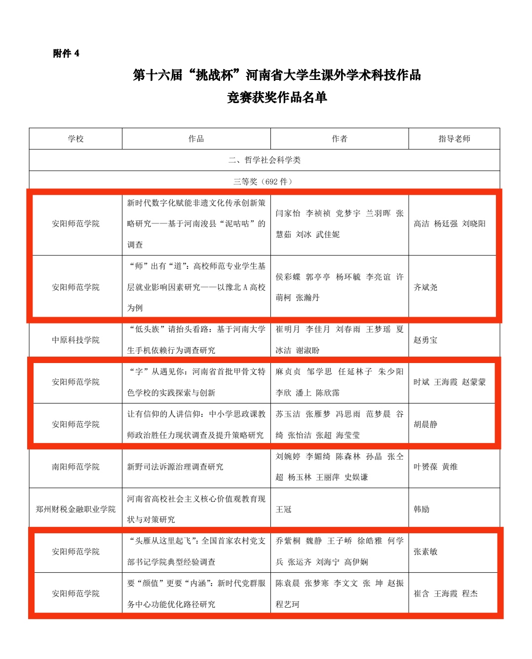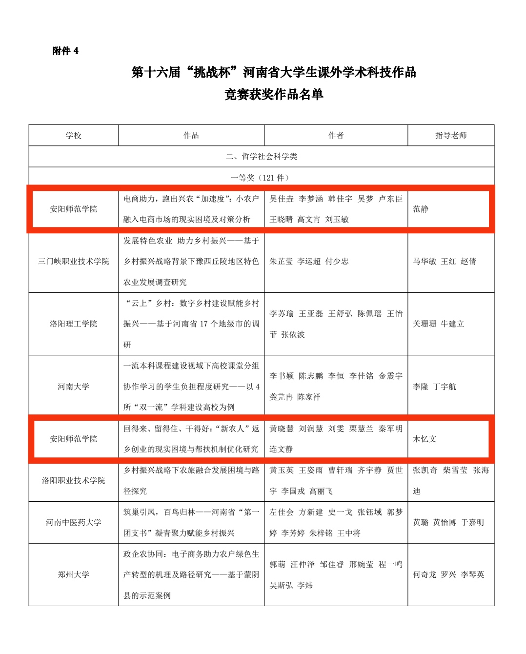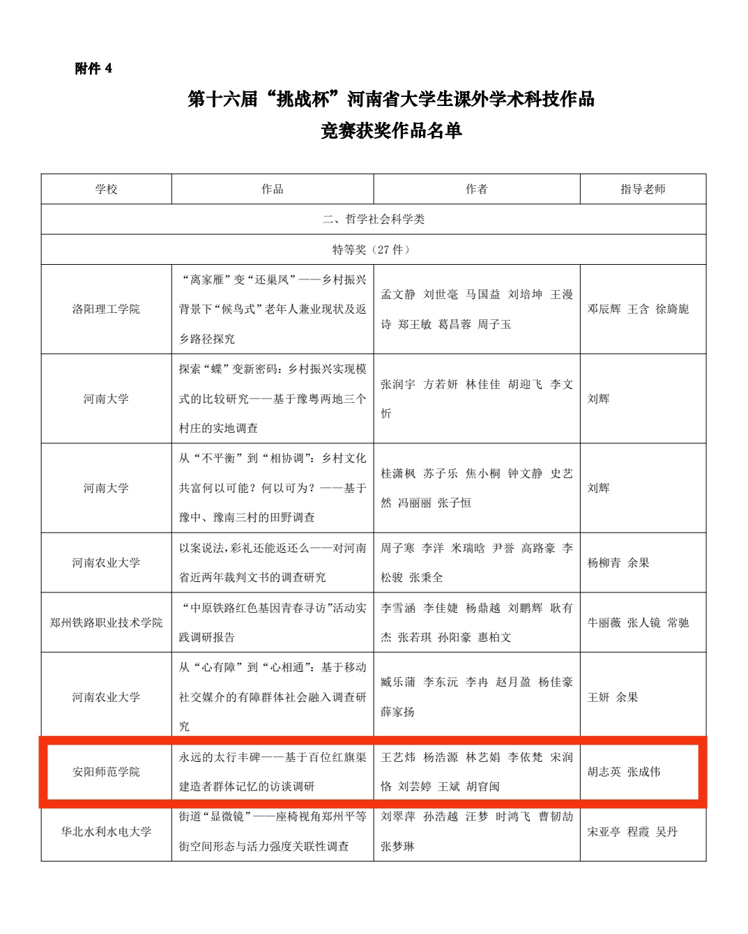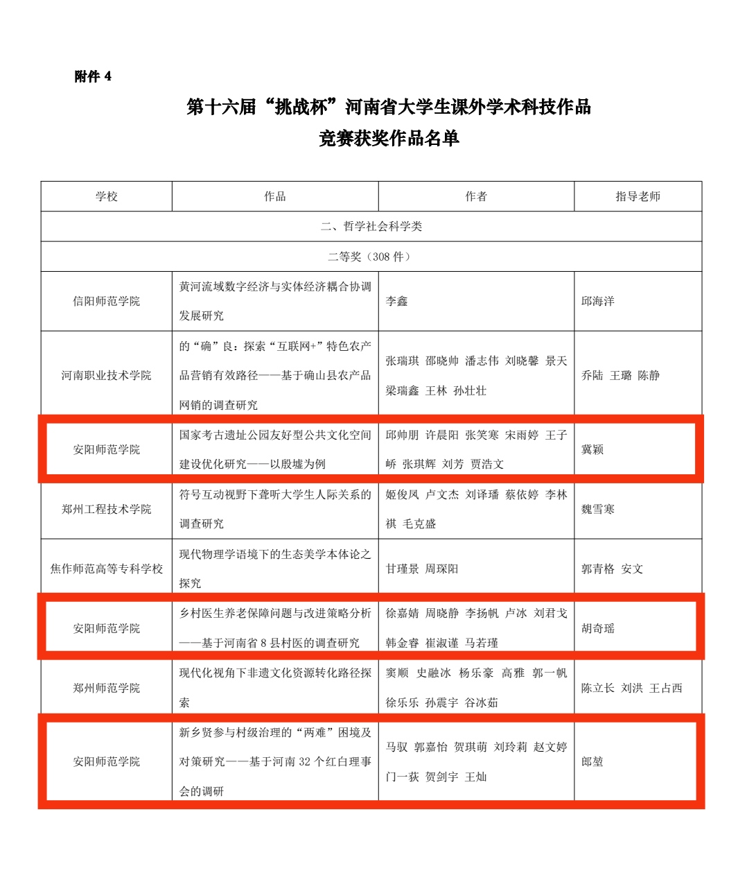 近日,由共青团河南省委、河南省教育厅、河南省社会科学院、河南省科学技术协会、河南省学生联合会共同举办的第十六届“挑战杯”河南省大学生课外学术科技作品竞赛终审决赛结果揭晓。我院师生积极参与、认真筹备,取得了优异成绩。