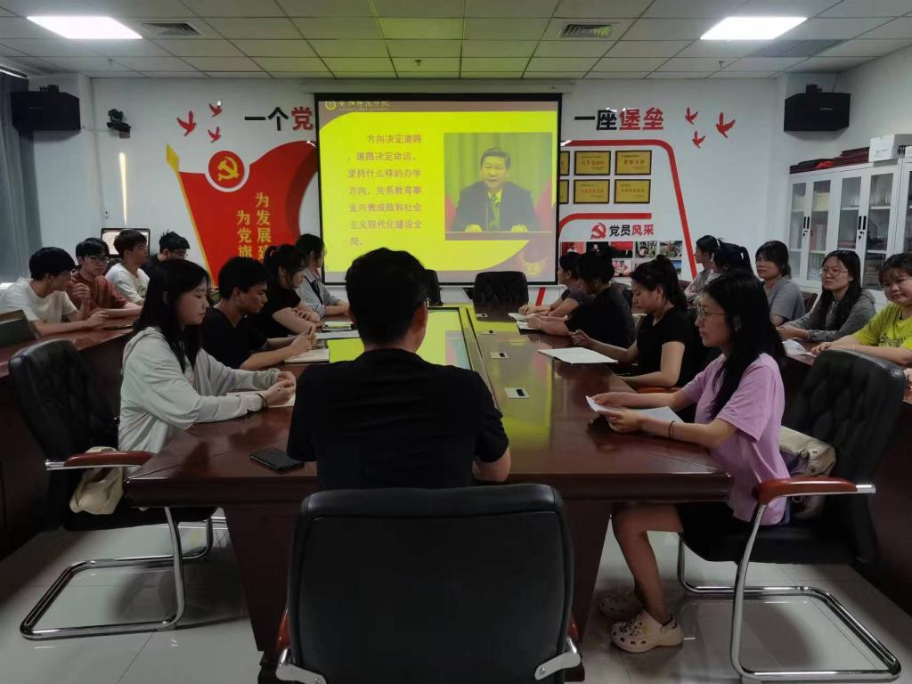 6月25日下午,我院副院长胡运锋以“我国教育最鲜亮的底色——坚持社会主义办学方向”为主题,在明园3A-502为2021级思想政治教育专业学生上党课,我院部分教师参加。