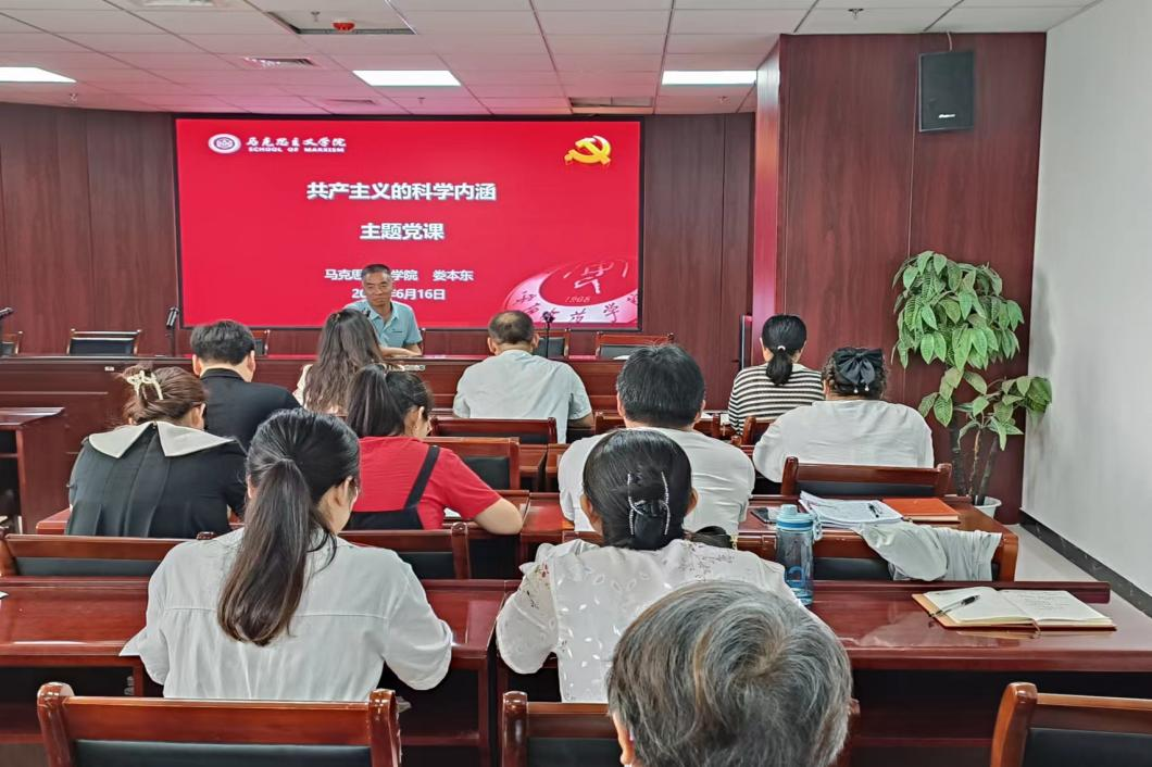 6月16日,我院副院长娄本东以“共产主义的科学内涵”为题,在明园3-A421为全院党员上党课。娄本东首先说明了共产主义社会理想不同于乌托邦,这既体现在马克思主义展望未来社会的立场和方法是唯物辩证的、科学的,又体现在通过对资本主义社会的扬弃,揭示了共产主义社会的基本特征,明确了共产党人的奋斗目标,是实事求是的结晶。接下来说明了共产主义社会作为最美好的人类社会一定能够实现的理由。最后,明确了作为中国共产党人要为实现共产主义而奋斗,就必须坚持和发展中国特色社会主义。