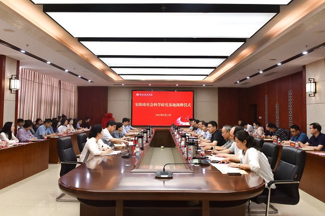 6月12日上午,安阳市首家社会科学研究基地——马克思主义中国化时代化“两个结合”研究中心揭牌仪式在我校勤业楼A106会议室举行。副市长常慧芹,我校党委副书记魏光峰、副校长孙金伟,市社科联、市委党校、红旗渠干部学院、安阳各高校负责同志及我校党委办公室、党委宣传部、科研处、研究生处、pg电子官方网站等部门负责人参加仪式。孙金伟主持仪式。