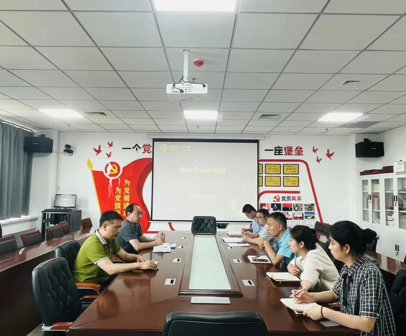 6月3日下午,我院在明园校区3A-502召开“廉政谈话面对面”活动,学院领导班子、各党支部书记参会。会议由党委书记张成伟主持。