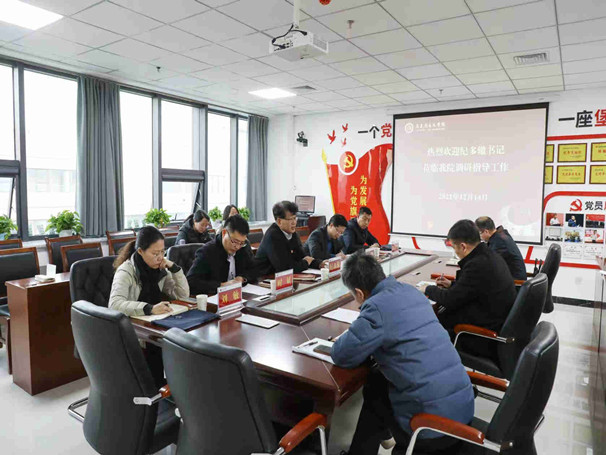 12月14日下午,校党委书记纪多辙、副校长姚远峰到我院调研指导工作,并参加党的十九届六中全会精神进教材、进课堂、进头脑思政课集体备课活动。党委办公室、党委宣传部、教务处等单位相关负责人参加活动。