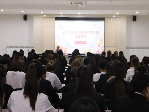 6月22日晚,在文博楼南楼五楼第一会议室,我院党委副书记王海霞为我院全体学生干部上了一堂题为《从百年党史中看共产党人的自我革命》的党史学习教育专题党课。