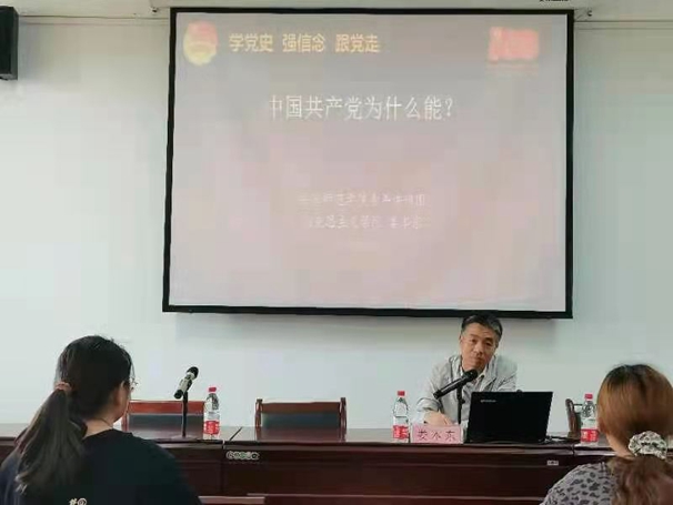 娄本东老师以《中国共产党为什么能》为题,用通俗易懂的语言,从“指导思想科学”、“理想信念坚定”、“坚守初心使命”三个方面向我院学子讲述了“中国共产党为什么能”。鼓励同学们要坚守初心使命,遵循内心的选择,进而阐明了中国共产党正是因为坚守初心使命,才能为中华民族谋复兴,为中国人民谋幸福。