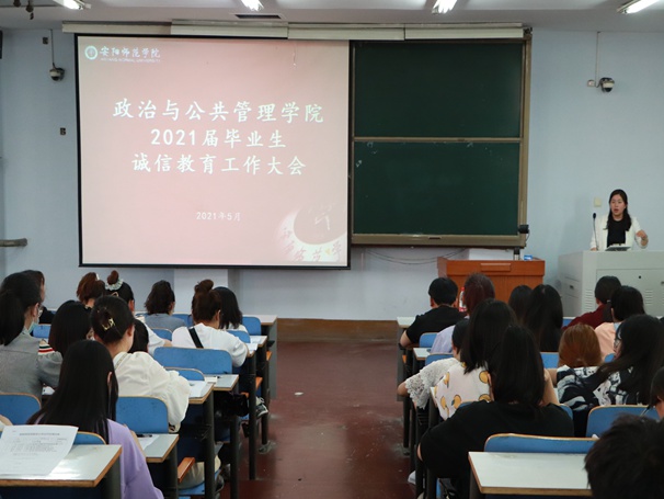 在2021届毕业生诚信教育工作会上,王素静老师就大学生生源地贷款及还款提出要求,为毕业生们详细讲解了人事代理、助学贷款和还款政策等,提醒同学们注意还贷时间,确保每位同学对离校手续应知尽知,助力学生顺利毕业、就业。