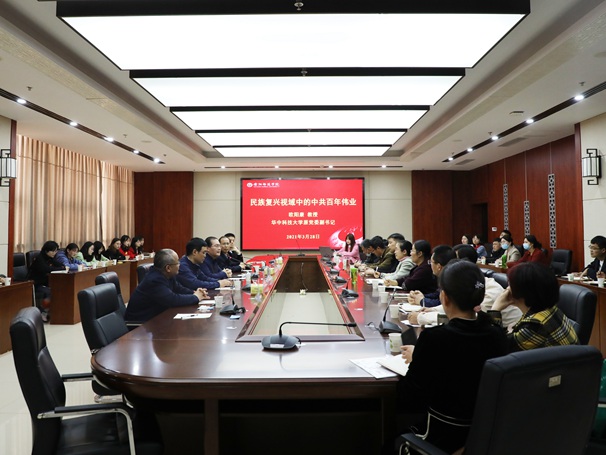 3月28日,华中科技大学欧阳康教授应邀来我院作题为“民族复兴视域中的中共百年伟业”的党史专题辅导报告。副校长张建国、王宏伟出席,我院师生代表聆听了报告。