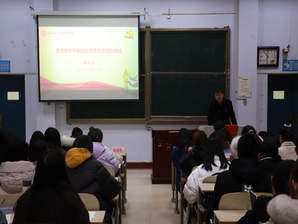12月21日晚,我院于和展阶梯203开展以“优秀团学干部的必备素质及提升路径”为主题的团学骨干培训,本次培训由我院党委书记张成伟主讲。我院党委副书记王海霞、分团委负责人黄琳琳、齐斌尧老师出席,党建办、分团委、学生会、社联分会全体成员以及19、20级班委参加本次培训。