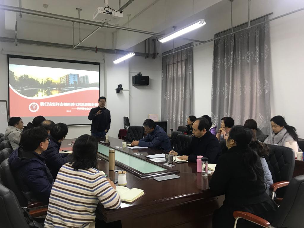 为深入学习贯彻习近平总书记在学校思政课教师座谈会上的重要讲话精神,进一步推进pg电子官方网站队伍建设、课程建设及教学提升,11月27日下午,副校长姚远峰为pg电子官方网站教师作专题报告。我院全体教师参会。