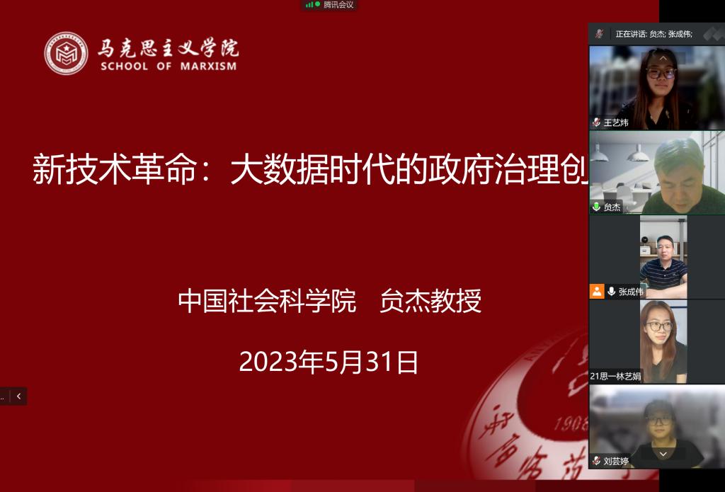 5月31日,中国社会科学院大学政府管理学院博士生导师贠杰教授应邀作了题为“新技术革命:大数据时代的政府治理创新”的线上讲座。报告会由学院党委书记张成伟主持。