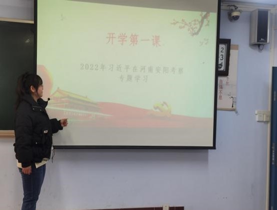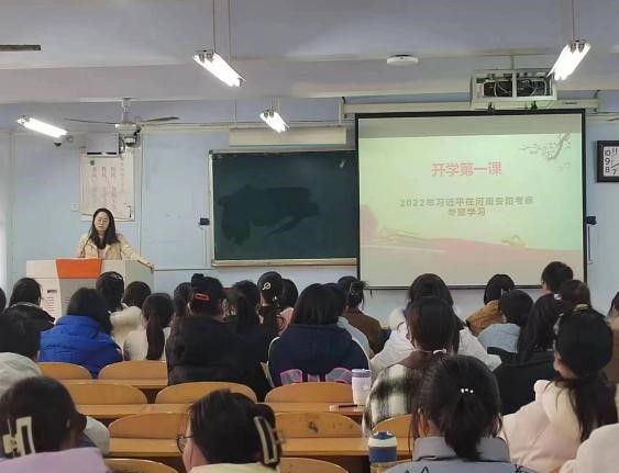 在随后到来的新学期第一周,教研室各位老师认真落实“开学第一课”教学任务,在课堂上带学生领略殷墟之美、红旗渠之伟,领会习近平总书记在安阳讲话精神,达到了提升学生思想境界的目的。