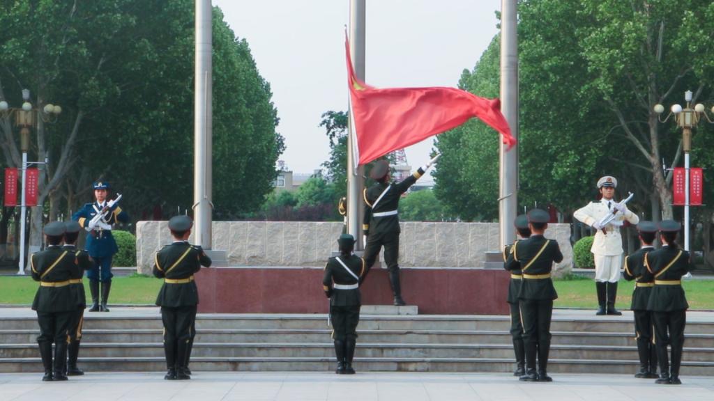 早上七时整,升旗仪式正式开始,学校国旗班成员迈着铿锵有力的步伐护送国旗至升旗台。随着《义勇军进行曲》奏响,五星红旗冉冉升起,现场庄严肃穆,同学们昂首挺胸,注视着国旗。升旗仪式结束后,国旗队有序退场,随后,参与升旗仪式的同学们也自觉、有序地退场。本次升旗仪式圆满结束。