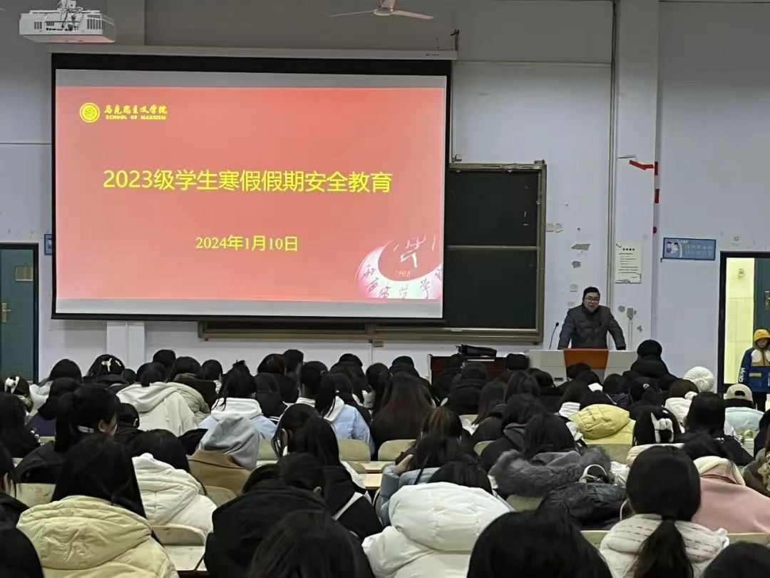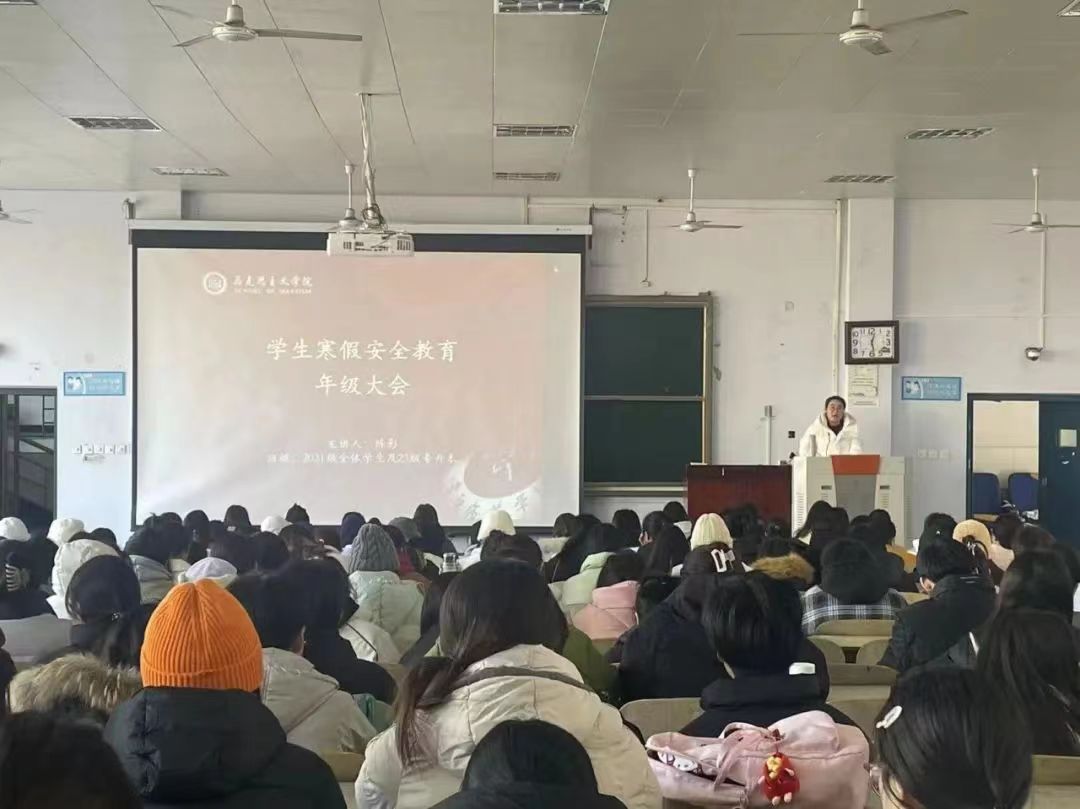 为增强我院学生安全防范意识,筑牢寒假学生安全防线,1月9日—11日,我院于各年级分别召开寒假假期安全教育主题班会。学院党委副书记訾彦锋、各年级辅导员主讲,全体学生参与。