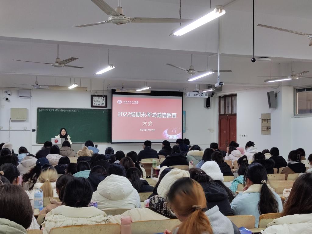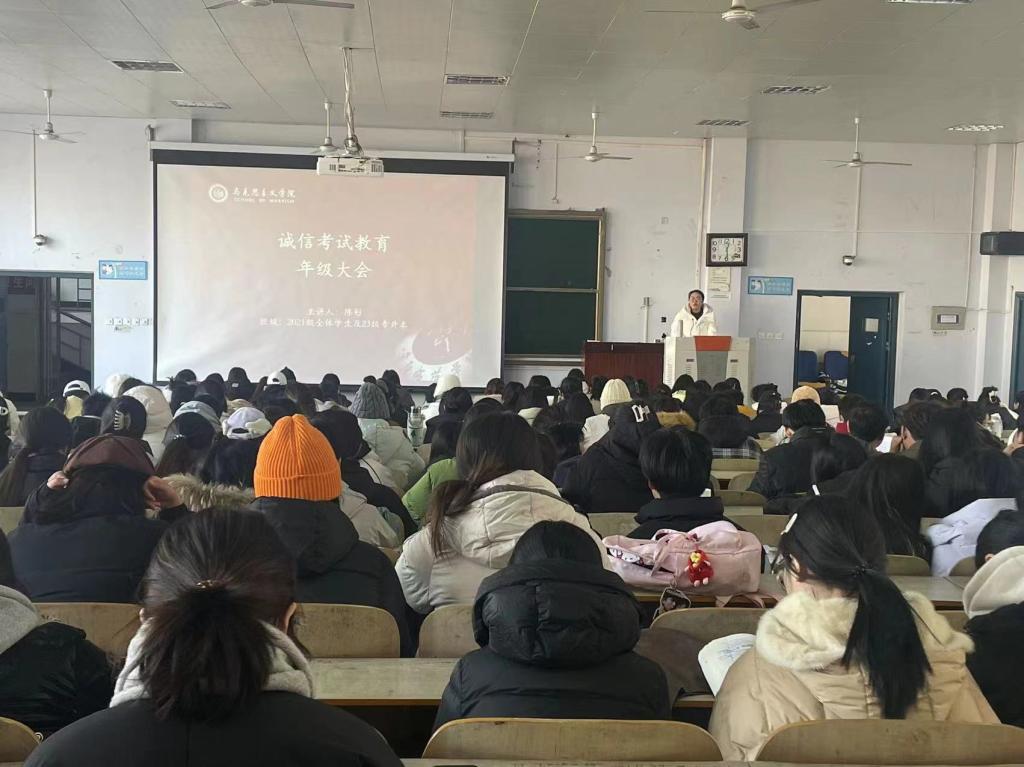 为提高我院学子诚信考试意识,切实加强学风建设,严肃考风考纪,营造风清气正的考试环境,12月25日-28日,我院各年级于明园教学楼、和容楼、和展楼召开考试诚信教育主题班会。班会由我院各年级辅导员主讲,各年级学生共同参与。