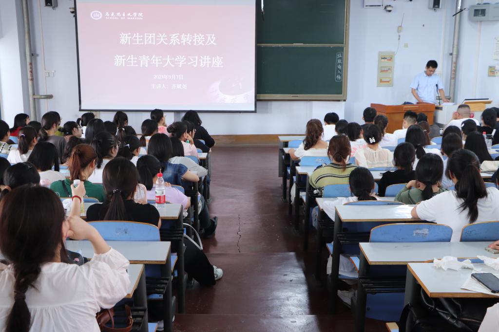为顺利开展我院2023级新生党、团关系转接工作,9月7日,我院于和鸣阶梯1303开展新生党、团关系转接讲座。本次讲座由我院2023级辅导员、分团委负责人齐斌尧主讲,23级全体新生参加。