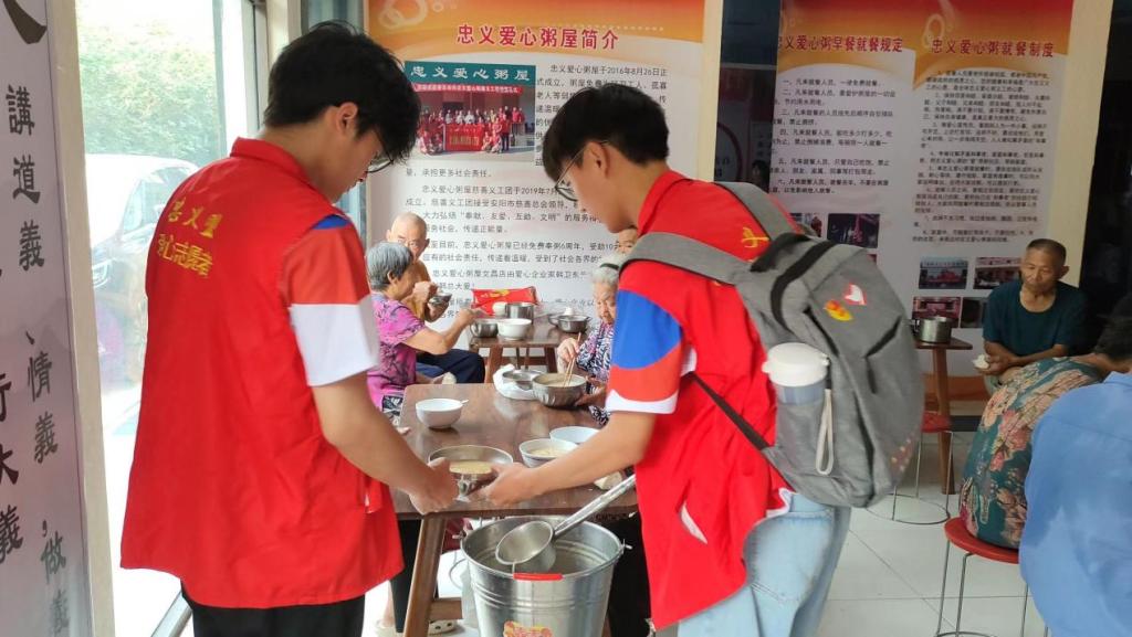 晨光熹微,宣讲队员便集体骑车到达安阳市忠义爱心粥屋换上志愿者红马甲,紧接着一个个精神矍铄的老人满脸笑容的来到粥屋,在场的宣讲队员都受到感染。待老人们到齐之后,粥铺负责人带领宣讲队员和老人们一起锻炼身体,一同唱响《学习雷锋好榜样》,宣讲队员为老人们演唱《我校校歌》,现场掌声不断,大家其乐融融。随后,宣讲队员为老人们盛粥、发放馒头,大家分工协作,有条不紊,并为老人们宣讲红旗渠故事,老人们认真地聆听宣讲队员们讲述“战太行、出太行、富太行、美太行、福太行”的发展五部曲。不少老人感触颇深,告诉我们如今的生活来之不易,要好好珍惜,更要坚持弘扬红旗渠精神。结束后,宣讲队员积极洗碗、打扫卫生、摆放桌椅,做好一系列收尾工作,并搀扶着腿脚不舒服的老人,这些举动受到老人和粥屋负责人的连连赞赏。