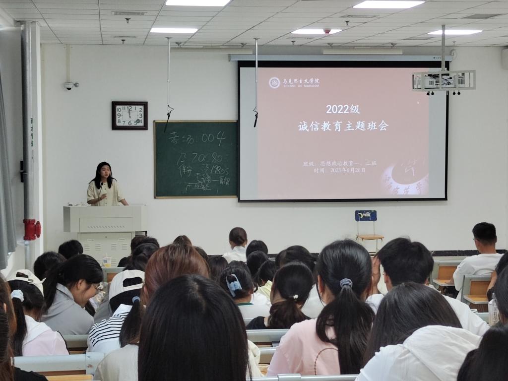 主题班会强调诚信考试的重要性,并运用校规条例及真实事例告诫同学们关于考试作弊行为的严重后果,指出诚信考试是一名大学生最基本的道德品质,每人应充分发扬求真务实的学习作风,以诚信考试为荣,以作弊违纪为耻,努力在考试中真实展现本学期的学习成果。