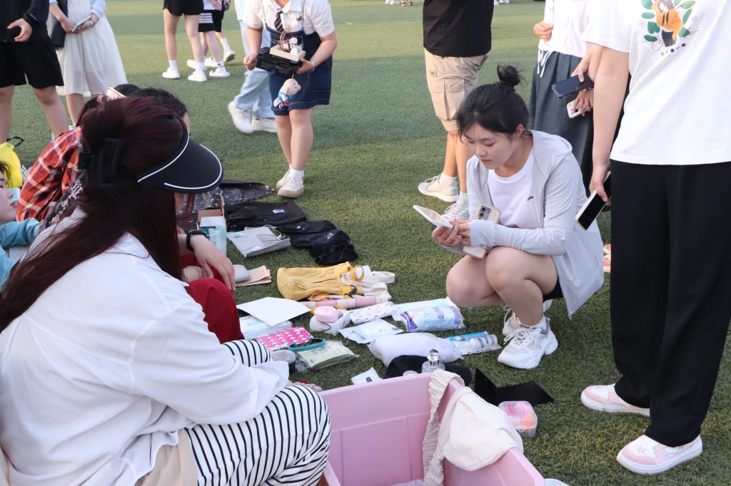 操场上,交易物品可谓琳琅满目,令人应接不暇。在这里,不仅可以“淘”到各种考试复习资料和课本辅导资料,还可以“淘”到诸如饰品、台灯、衣服等生活用品。同学们在摊位前饶有兴致地选购,摊位的工作人员也细心热情地给前来咨询的同学介绍。交易活动有条不紊地进行着,整个活动和谐而有序,询问声、欢笑声、讨价还价声相映成趣。
