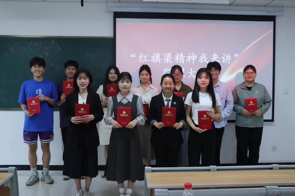 本次比赛主要分为学生展示和评委点评两个环节。比赛过程中,各参赛选手思路清晰,板书整洁,通过PPT讲解的方式表达出自己对红旗渠精神的理解和认识,并从各自所选角度向评委展示红旗渠精神魅力所在。各评委老师肯定了同学们讲课精彩生动、教态自然大方等优点,也指出一些同学课程内容中的错误及理解不透彻等方面的不足,并给出指导性建议。比赛结束后,评委老师给获奖同学分别颁发荣誉证书和奖品,并与他们合影留念。