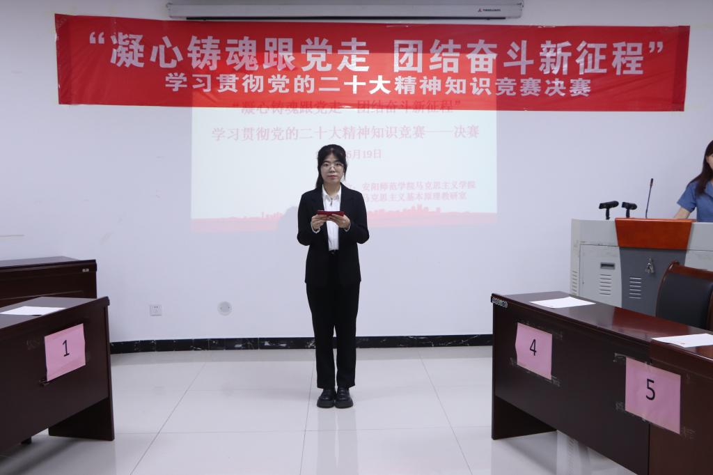 为深入学习贯彻党的二十大精神,全面检验我院学子对党的二十大知识的了解,增强政治定力,激发学习兴趣。5月19日晚,我院于明园教学楼3A—421举办“凝心铸魂跟党走,团结奋斗新征程”学习党的二十大精神知识竞赛决赛。经初赛选拔,21级、22级共六人成功进入决赛,我院院长娄本东,教师杨珺、张亚娟、张瑶、李玉洁、木忆文担任评委。