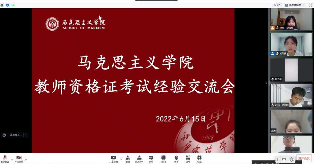 6月15日,由我院学生会学习部主办的教师资格证考试经验交流会以线上会议的形式顺利举行。本次交流会诚邀在教师资格证考试中的优秀考生分享经验,交流心得。