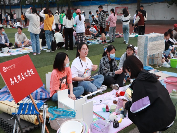 夜幕降临以后,操场上摆满精美的摊位、琳琅满目的商品,让过往的同学目不暇接。同学们纷纷利用这次跳蚤市场挑选自己心仪的书籍、笔记、日常用品和小物件。熙熙攘攘的人群川流不息,同学们来回穿梭,在各个摊位挑选旧物。叫卖声,砍价声不绝于耳。现场如同夜市一般,热闹非凡,成群结队的学生显示着青春的活力。