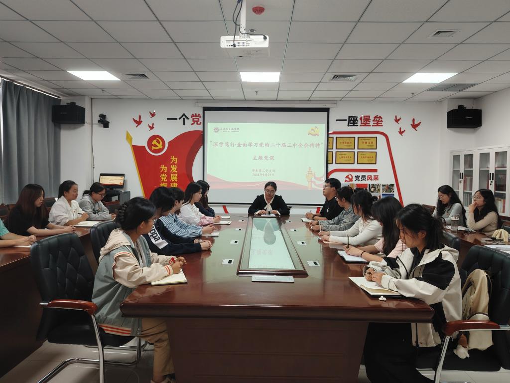 党的二十届三中全会是在以中国式现代化全面推进强国建设、民族复兴伟业的关键时期召开的一次重要的会议。为引导党员在学习贯彻党的二十届三中全会精神上走在前、作示范,pg电子官方网站学生党支部于9月27日上“深学笃行:全面学习党的二十届三中全会精神”主题党课。本次党课由支部书记主持,各支部全体党员参加。