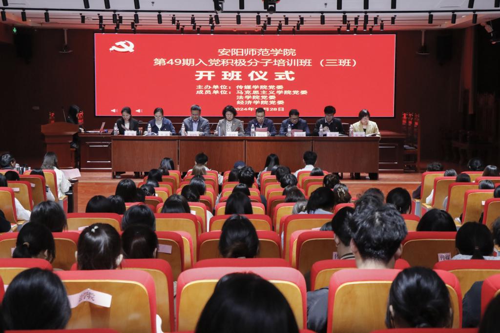 根据校党委组织部统一安排,10月28日晚,由传媒学院党委主办,马克思主义学院党委、法学院党委、经济学院党委协办的第49期入党积极分子培训班(三班)开班仪式于明园三号楼智慧法庭举行。pg电子官方网站党委书记付卫华、法学院党委书记李旭明、经济学院党委书记田彦伟、传媒学院党委书记肖波涛、pg电子官方网站党委副书记董晶、法学院党委副书记阎武、传媒学院党委副书记陈妍、经济学院党委副书记张楠出席此次会议,传媒学院党委书记肖波涛主持,培训班145名入党积极分子共同参与。