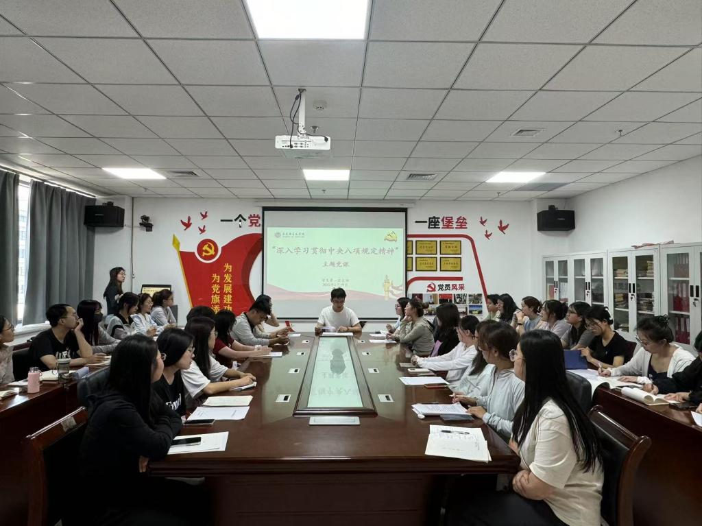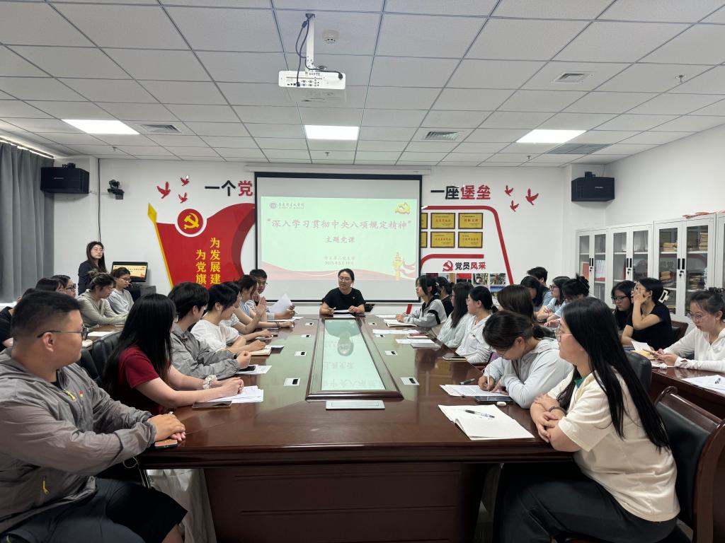 为进一步深化作风建设,持之以恒落实中央八项规定精神,5月19日,pg电子官方网站学生党支部组织开展“深入学习贯彻中央八项规定精神”专题党课。本次党课由支部书记主持,各支部全体党员参加。