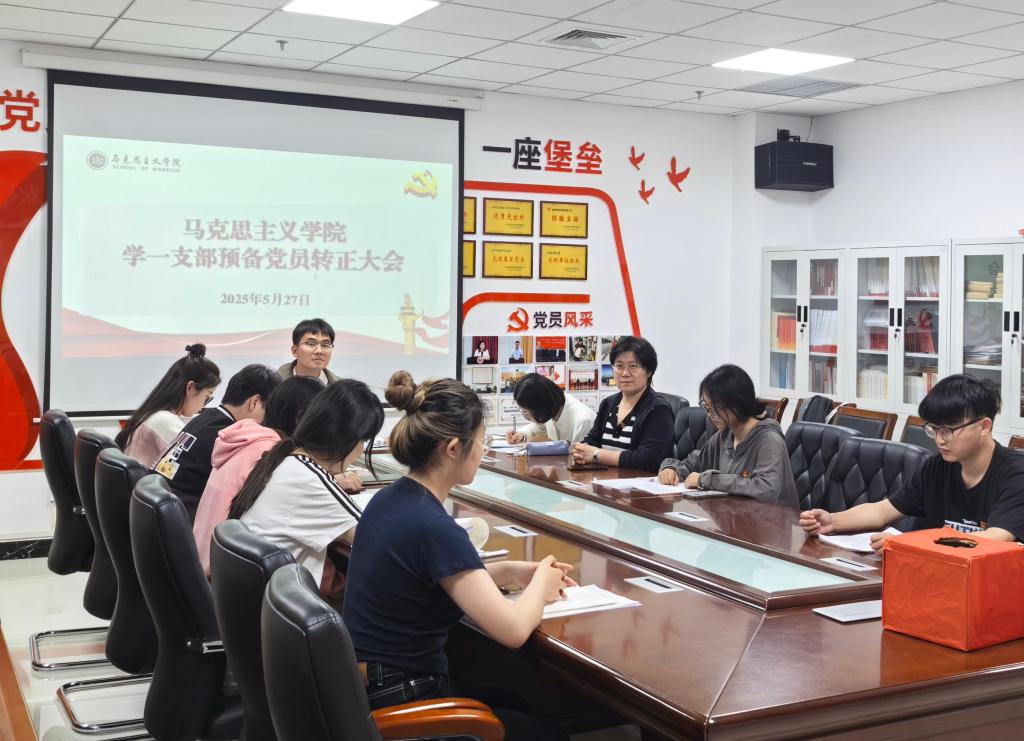 新一批预备党员向党组织汇报了自己在预备期内的思想、学习和工作情况。经过逐一严格的讨论和表决,他们顺利转正,正式成为中国共产党的一员。学院党委书记付卫华以“永葆党员先进性,争做时代先锋”为主题为与会党员讲授专题党课,对全体党员提出以下四点要求:第一,始终保持思想上的先进性,深化理论认识,筑牢政治忠诚,着力提升政治能力;第二,将理论学习作为终身追求和生活方式,持续加强学习,在学习中提升能力、守正创新;第三,主动担当作为,树立服务意识,当好师生沟通的桥梁纽带,发挥模范带头作用;第四,持续改进作风,严格落实中央八项规定精神,严守纪律规矩,敬畏法纪、权力和组织,常怀谦虚之心,不惧风险挑战,成为一名新时代的奋斗者。