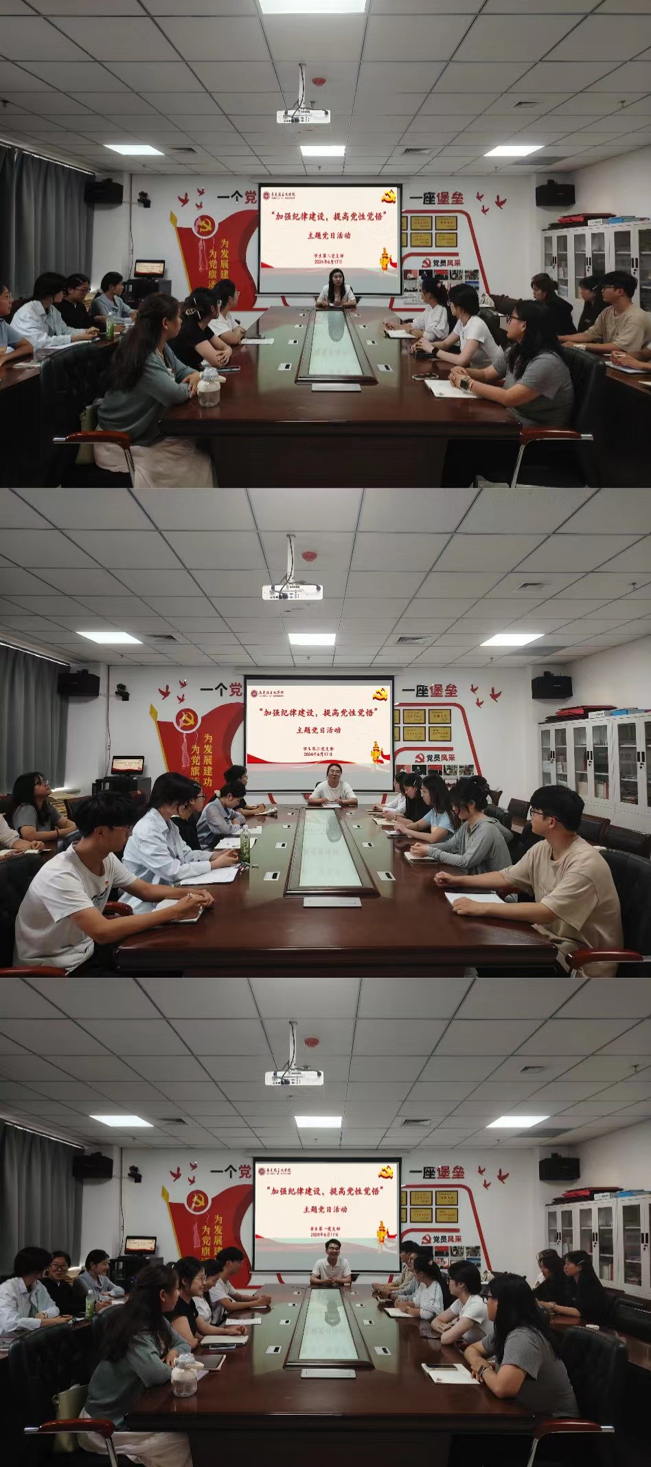 学生支部全体党员重点学习了习近平总书记关于全面加强党的纪律建设的重要论述摘编。围绕“党的纪律”专题学习开展研讨交流,讲收获、谈感悟、表态度,进一步深化对加强党的纪律建设的思想认识,督促党员自觉将纪律要求内化于心、外化于行。最后,支部书记陈影组织全体党员重温入党誓词,引导广大党员牢记初心使命,履行党员义务,进一步强化党员党性意识。