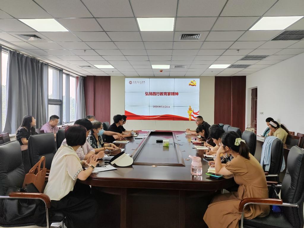 为深入贯彻落实习近平总书记关于弘扬教育家精神的重要指示,引导教师坚守教育初心,厚植教育情怀,进一步发挥党支部的战斗堡垒和党员的先锋模范作用,5月24日,我院教工第二党支部在明园3A-303会议室组织开展“弘扬践行教育家精神”主题党日活动。会议由教工第二党支部书记韩成才主持,党支部全体成员参与。