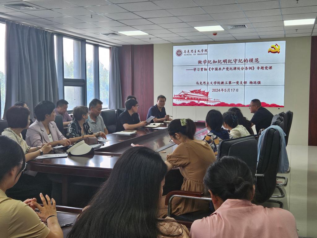 5月17日,我院教工第一党支部在明园教学楼3-A303组织开展题为:做学纪知纪明纪守纪的模范——学习贯彻《中国共产党纪律处分条例》的专题党课。党课由第一党支部书记杨廷强主讲,党支部全体成员参与。
