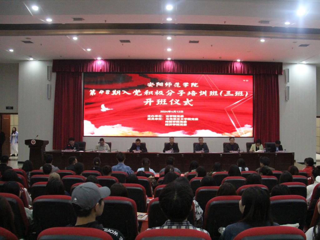 根据校党委组织部统一安排,4月12日晚,由法学院党委、pg电子官方网站党委、传媒学院党委、经济学院党委共同举办的第48期入党积极分子培训班(三班)开班仪式于文博楼二楼报告厅举行。pg电子官方网站党委书记张成伟、法学院党委书记李旭明、传媒学院党委书记王彦辉、经济学院党委书记田彦伟、pg电子官方网站党委副书记訾彦锋、传媒学院党委副书记陈妍、经济学院党委副书记李建平出席此次会议,法学院党委副书记阎武主持,培训班174名入党积极分子共同参与。
