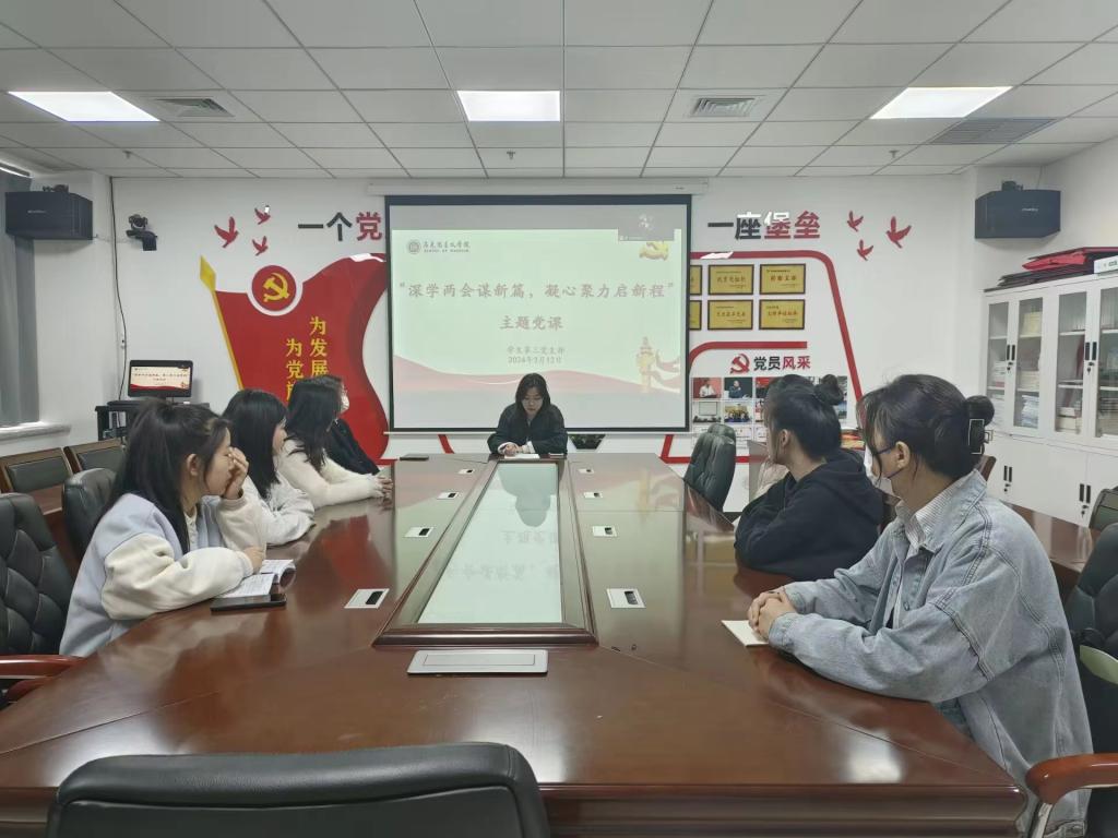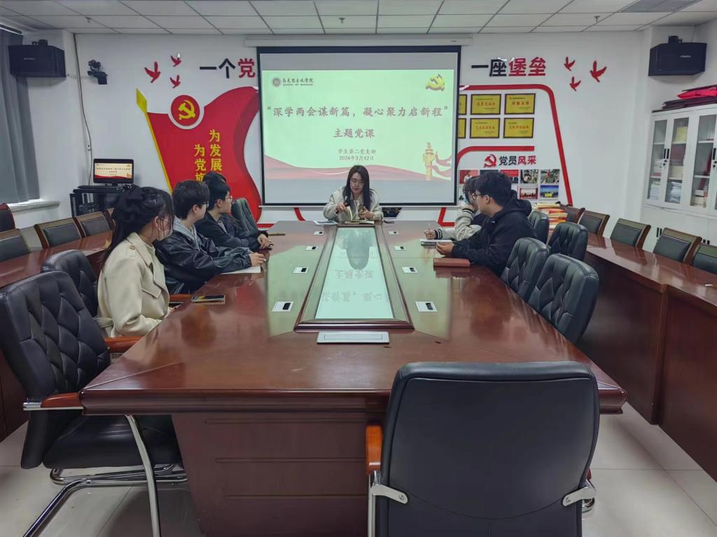 2024年3月12日-13日,我院学生第一、二、三党支部于明园3-A502党员之家开展“深学两会谋新篇,凝心聚力启新程”主题党课,本次党课由支部书记主持,支部全体成员参加。