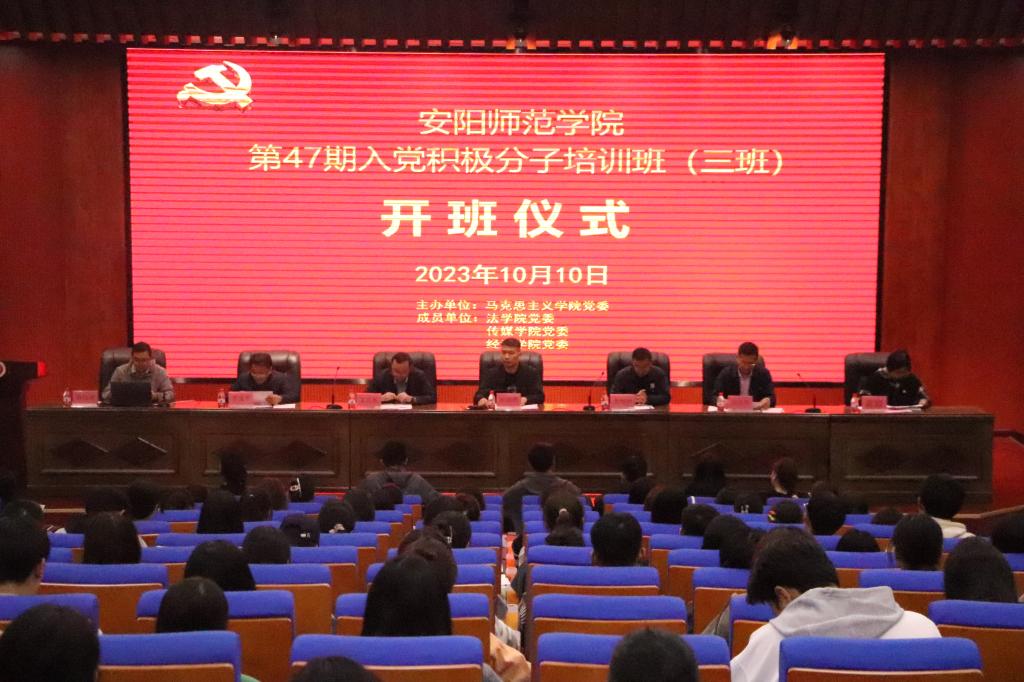 10月10日晚,由pg电子官方网站党委主办,法学院党委传媒学院党委、经济学院党委共同举办的第47期入党积极分子培训班(三班)开班仪式于勤业楼一楼报告厅举行。pg电子官方网站党委书记张成伟、法学院党委书记李旭明、传媒学院党委书记王彦辉、经济学院党委书记田彦伟、经济学院党委副书记李建平、传媒学院党委副书记陈妍出席,培训班174名学员参加本次开班仪式。pg电子官方网站党委副书记訾彦锋主持开班仪式。