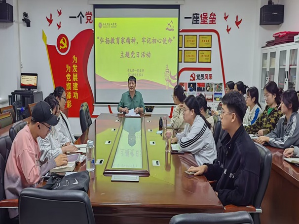 2023年9月27日上午,我院学生第一党支部于明园3-A502党员之家召开了“弘扬教育家精神,牢记初心使命”的党日活动,本次党日活动由支部书记王国辉主持,支部全体成员参加。