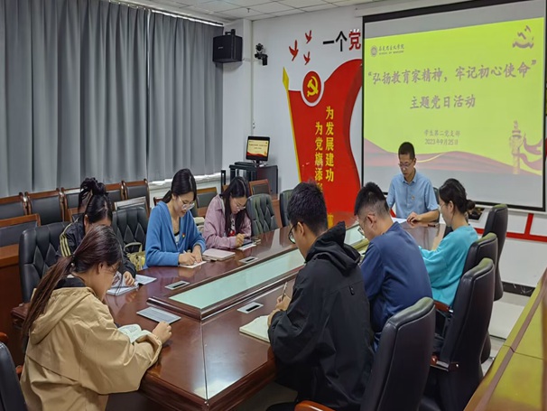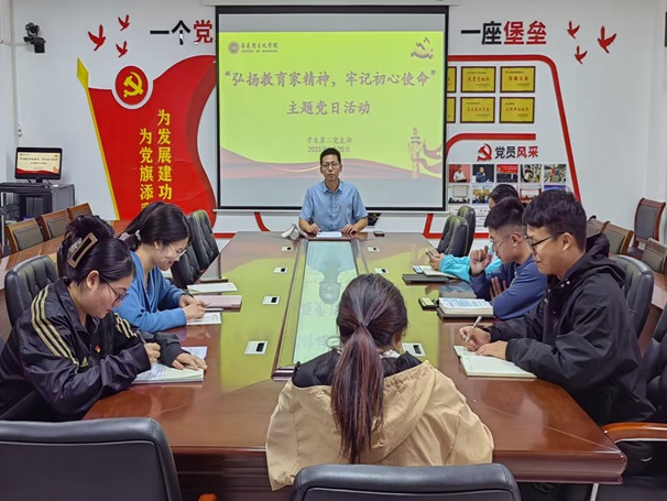 2023年9月25日下午,我院学生第二党支部于明园3-A502党员之家召开“弘扬教育家精神,牢记初心使命”主题党日活动,本次党日活动由支部书记齐斌尧主持,支部全体成员参加。