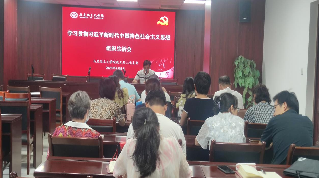 2023年9月8日pg电子官方网站教工第二党支部在明园3A421会议室召开2023年度“学习贯彻习近平新时代中国特色社会主义思想”专题组织生活会,会议由教工第二党支部书记韩成才同志主持。