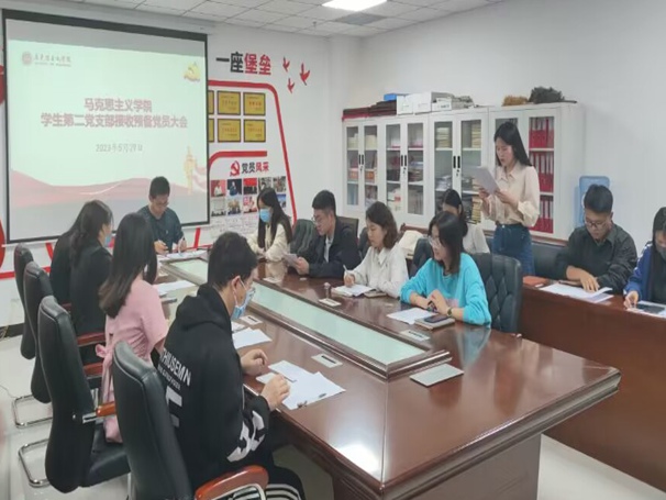 2023年5月29日,我院学生第二党支部在明园3-A502党员之家召开接收预备党员大会,大会由学生第二党支部书记齐斌尧主持,支部全体成员参会。