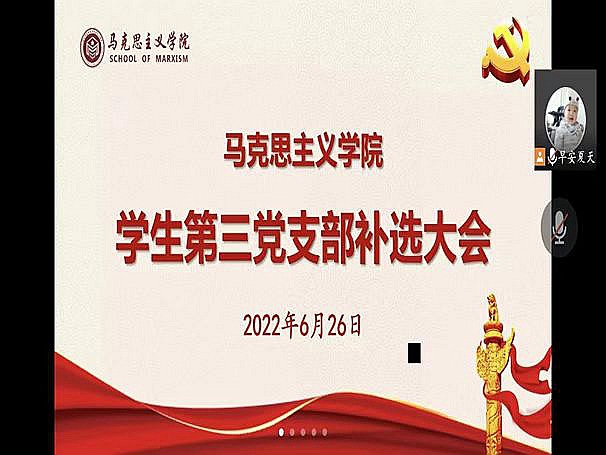 2022年6月26日下午,我院学生第三党支部补选大会采取线上会议的方式召开。本次会议由支部书记黄琳琳同志主持,学生第三党支部全体成员参加。